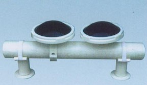 球冠形微孔曝氣器主要由曝氣膜片、支承托盤、螺旋壓蓋、螺紋接咀等部件組成,只要將橡膠膜片套在支承托盤上,用螺旋壓蓋擰緊即可。在安裝時(shí),再把支承托盤(中心有G3/4”內(nèi)螺紋通氣道)裝于布?xì)夤艿理敳康穆菁y接咀上。